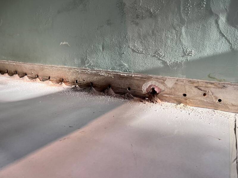 Hieronder injectiewerkzaamheden voor een inloopkast in een monumentaal pand om vocht bij voorbaat tegen te gaan voordat de kasten worden ingebouwd.